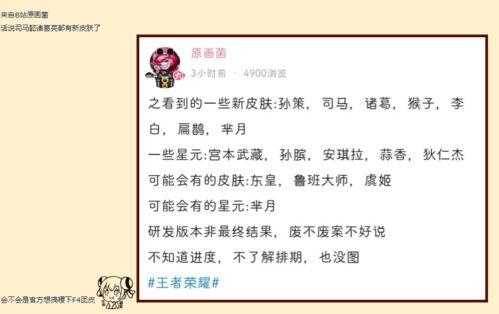 - 微博:微博上有很多游戏博主、官方账号和玩家,他们经常会分享一些内部消息或者提前看到的皮肤设计图。记得关注一些官方账号,比如游戏官方微博,这样就能第一时间收到官方的爆料信息。